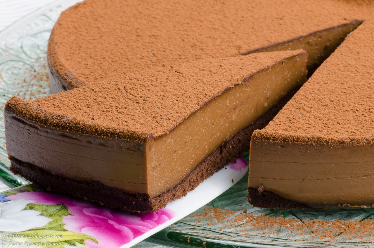 La base no se hace con galletas sino que consiste en un bizcocho al que también se le añade cacao en polvo. Es una receta que encontré por casualidad un día en el que el el tiempo se me echaba encima y necesitaba un postre rápido y rico; al ser fría, y necesitar tiempo de reposo, queda una crema cuajada y suave que en este tiempo resulta muy apetecible.